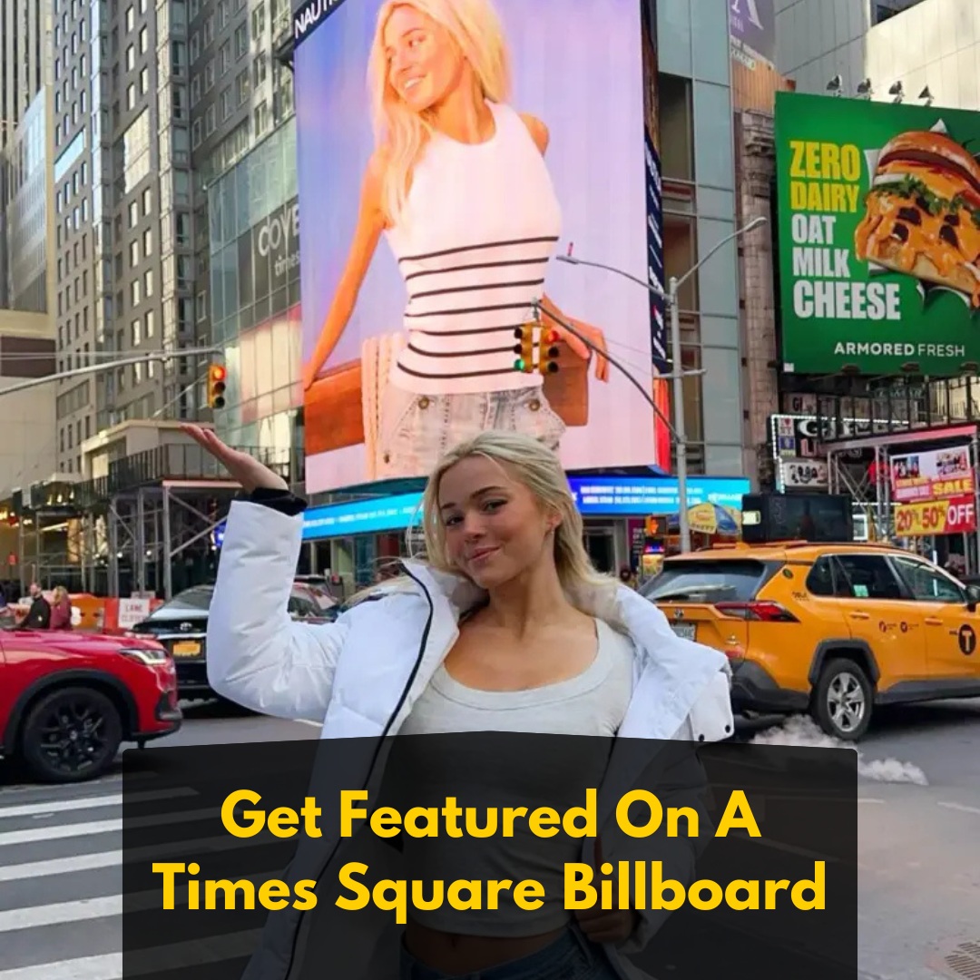 You will get featured on a day and time you prefer. Our team will record the footage of your billboard feature and share it with you. You are also welcome to go to New York to take photos and videos of your feature.